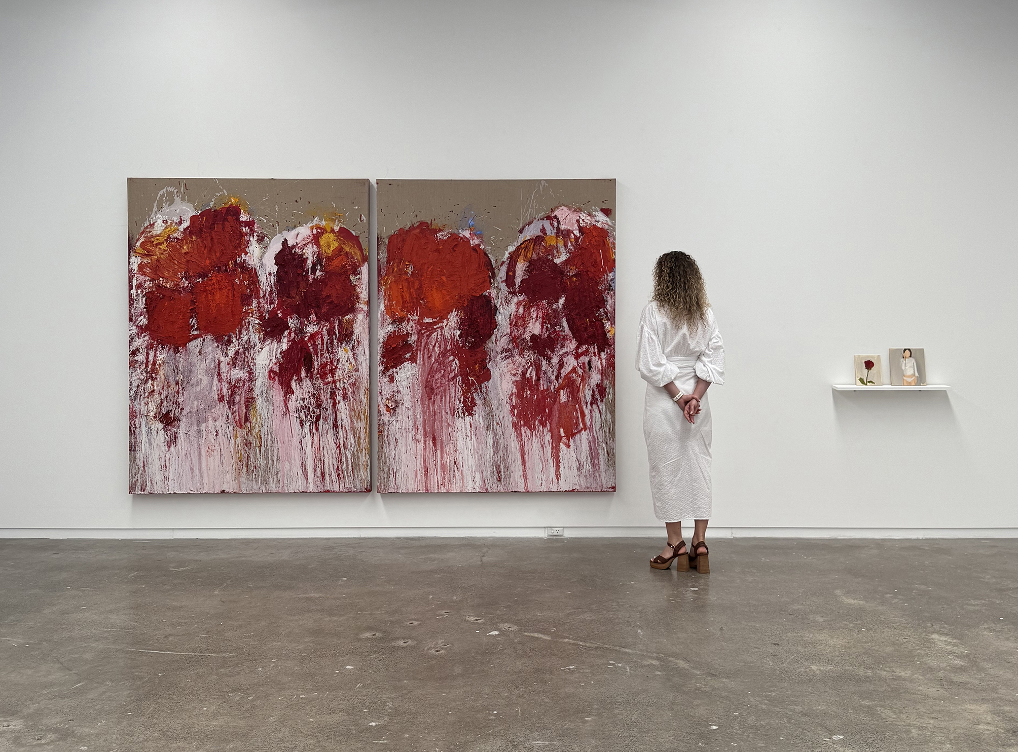 Aida Tomescu’s impressive diptych demonstrates a dramatic efflorescence – a flowering of pigment and energy across two open linen fields. This embrace of the linen as a foundational element in the spatial implications of the painting rather than an extension of the support has allowed Tomescu’s paintings to open, simultaneously outwards and inwards, establishing a physical and metaphorical space for the painting to build body and presence.