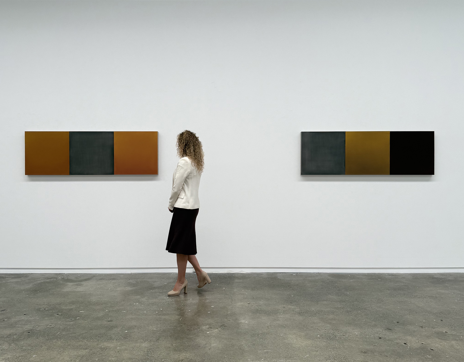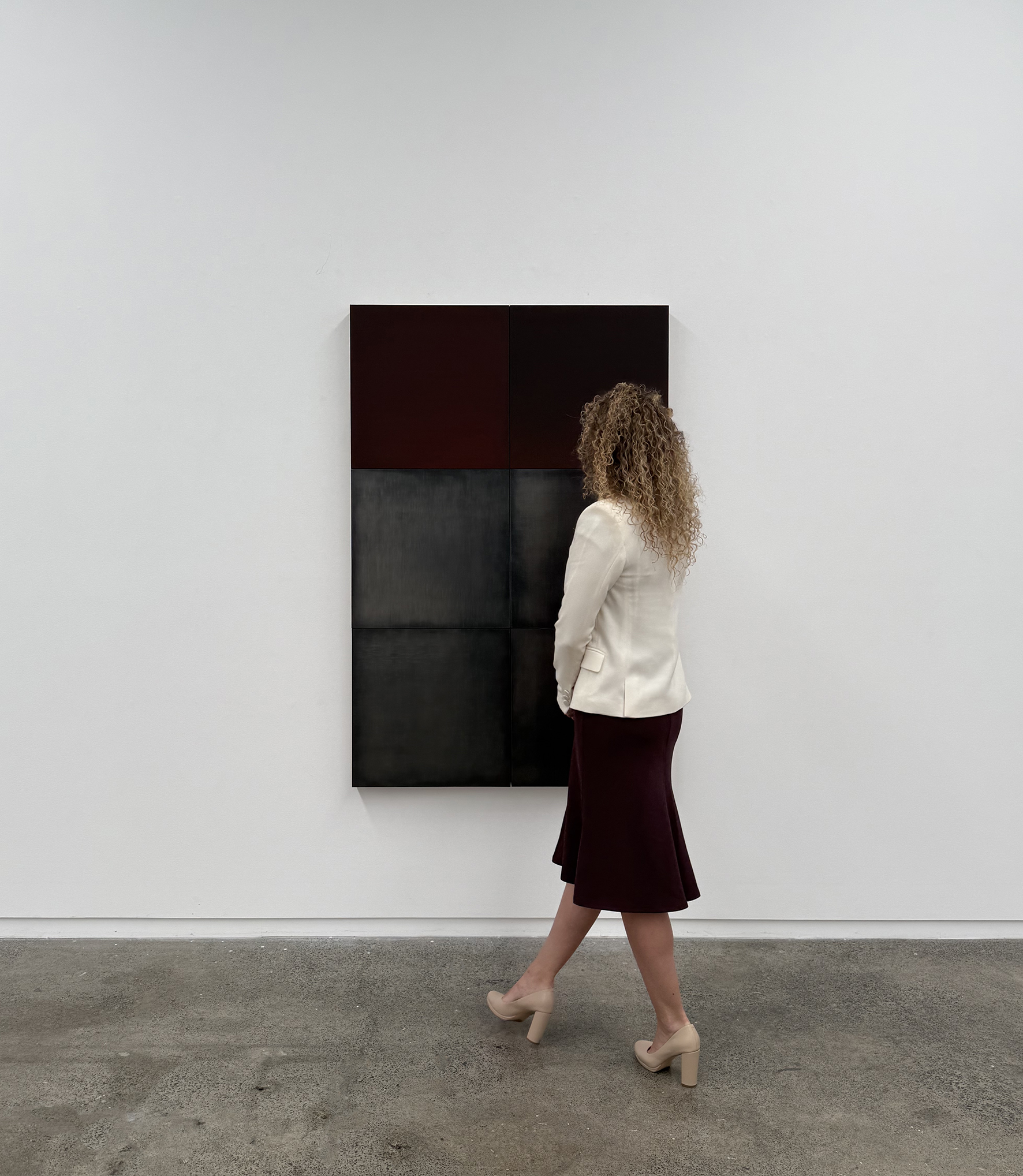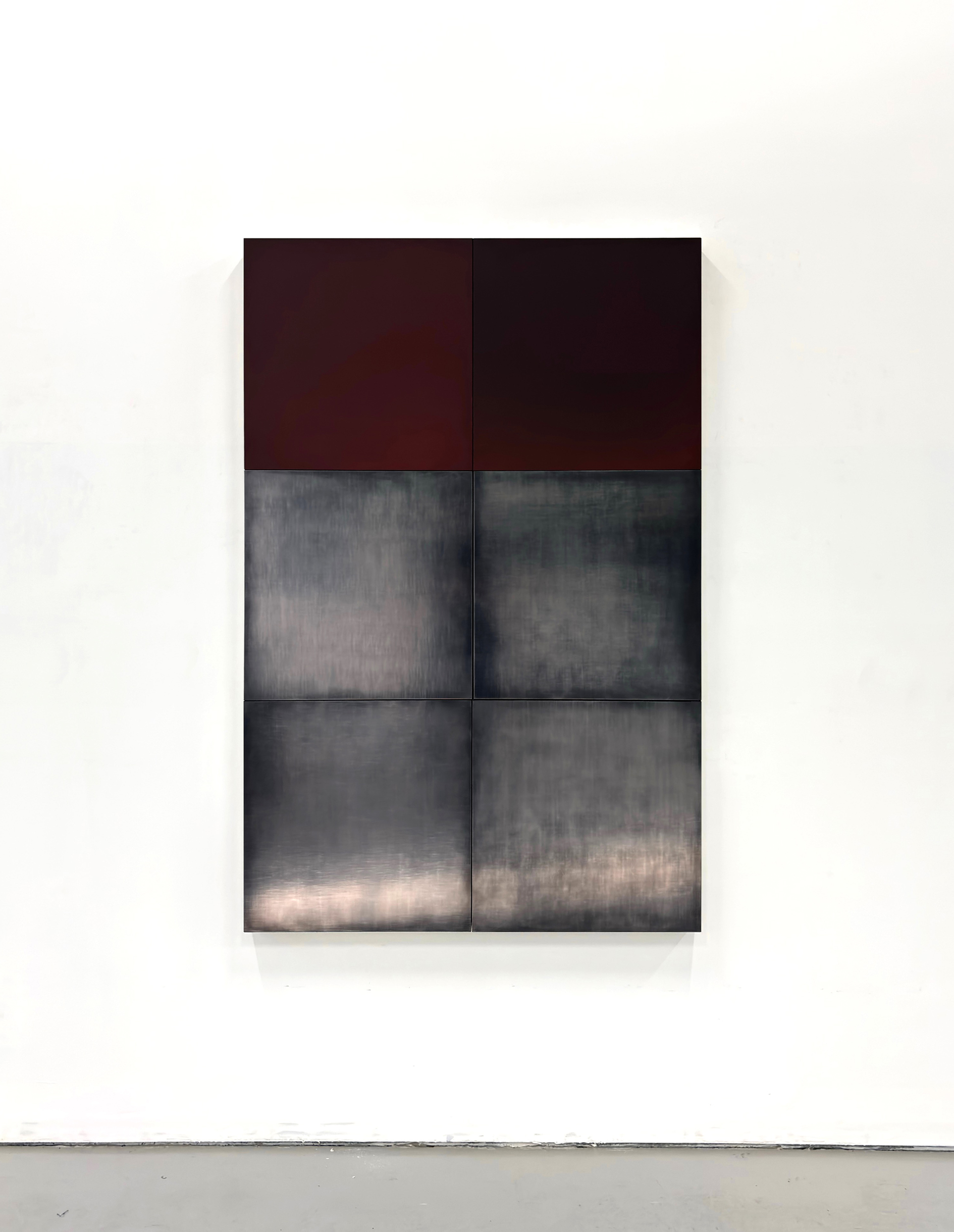 Matthew Allen is a patient painter. Certainly his graphite surfaces can’t be rushed. There is no opportunity for flourish and ornamentation. Even with the addition of the beautifully modulated colour that now join the assembly of graphite panels, so as to build rhythmic sequences of colour and light, one has the sense that his painting practice is an act of sustained meditation.